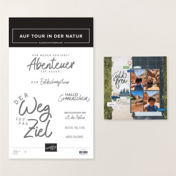 Capture the thrill of exploration and the joy of nature in your scrapbook spreads with the Auf Tour in der Natur Stamp Set. These sentiment-only stamps are all about embracing adventure, soaking in the sunshine, and celebrating the great outdoors. Whether you’re documenting a scenic hike or a rustic mountain getaway, this set will help you put your wanderlust into words.