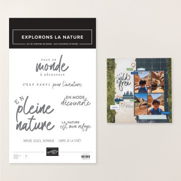 Capture the thrill of exploration and the joy of nature in your scrapbook spreads with the Explorons la nature Stamp Set. These sentiment-only stamps are all about embracing adventure, soaking in the sunshine, and celebrating the great outdoors. Whether you’re documenting a scenic hike or a rustic mountain getaway, this set will help you put your wanderlust into words.